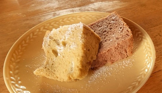 そうそう、シフォンケーキ作ったんですよ ココアと抹茶です そりゃヽ(`∀´*ヽ)あんまり抹茶は色がわからないかもですが^^;